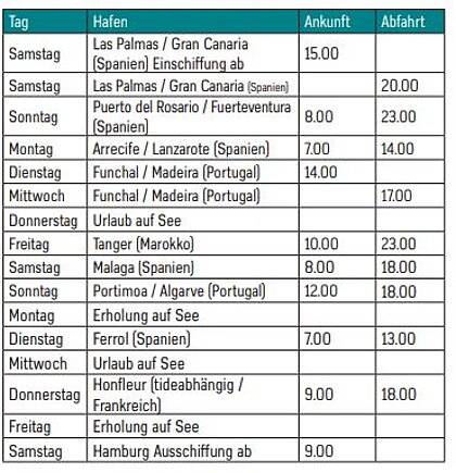 - Kreuzfahrt ab Las Palmas bis Hamburg